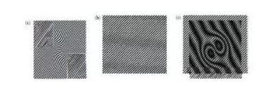 當(dāng)把這幅圖縮小時(shí),a和b的條紋不可見,但是c圖中的莫爾條紋仍能夠清楚地看到。