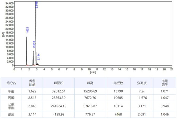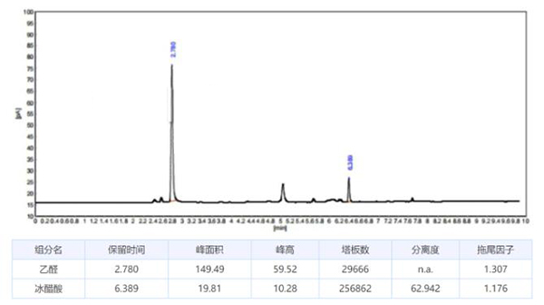 1、月旭WM-InoWAX(30m×0.25mm,0.25μm)測(cè)定冰醋酸中乙醛: