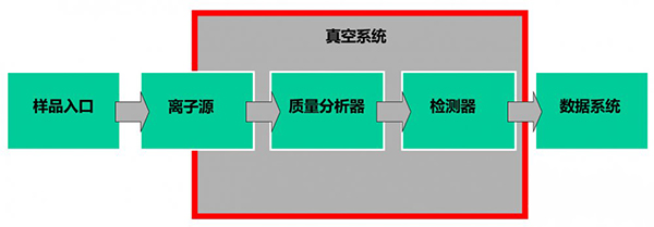 質譜主要由樣品入口、離子源、質量分析器、檢測器、數據系統、質量分析器和檢測器(許多質譜的離子源)均在真空中,由真空泵來提供所需真空度。