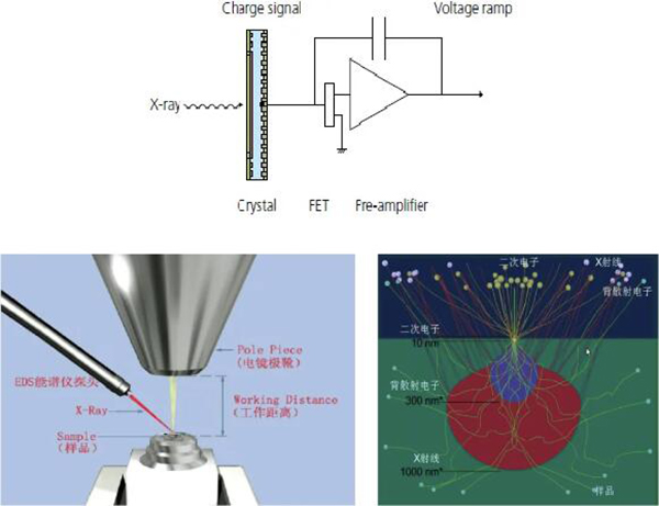 單個X射線光子轉(zhuǎn)化為電荷信號后在前置放大器的輸出端以臺階形式疊加在線性增大的電壓信號上,經(jīng)處理和分析后,可以得到所含元素的特征X射線強度值,通過與標準樣品的X射線能譜對比修正后得到定量分析結(jié)果。