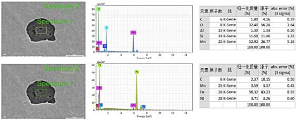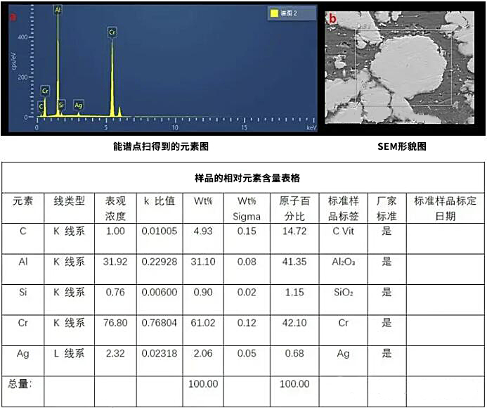 測試樣品的點分析結(jié)果圖