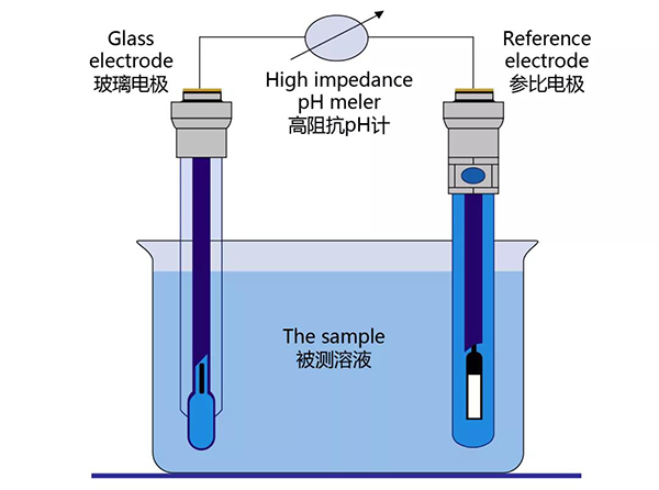 pH計的參比電極電位穩(wěn)定,那么在溫度保持穩(wěn)定的情況下,溶液和電極所組成的原電池的電位變化,只和玻璃電極的電位有關,而玻璃電極的電位取決于待測溶液的pH值,因此通過對電位的變化測量,就可以得出pH溶液的PH值。