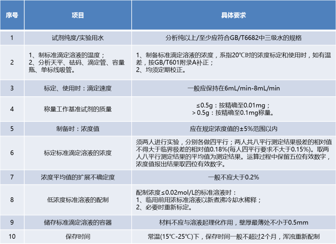 1、一般規定(GB/T601《滴定分析用標準溶液制備》)