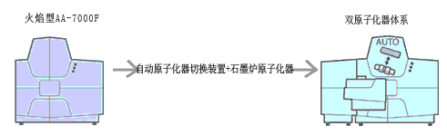選件AAC-7000可實現火焰原子化器和石墨爐原子化器的集成,并使得二者的切換方便迅速。* AAC-7000不能安裝在AA-7000G上。